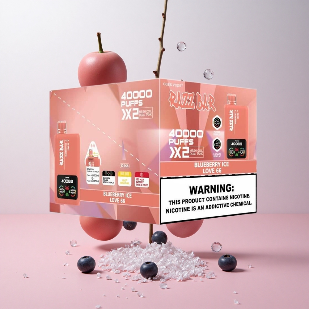 Razz Bar 40000 Puffs Wegwerp Vape Blauwe Bes Ijs_Love 66 met Power Screen Display & Type-C Port